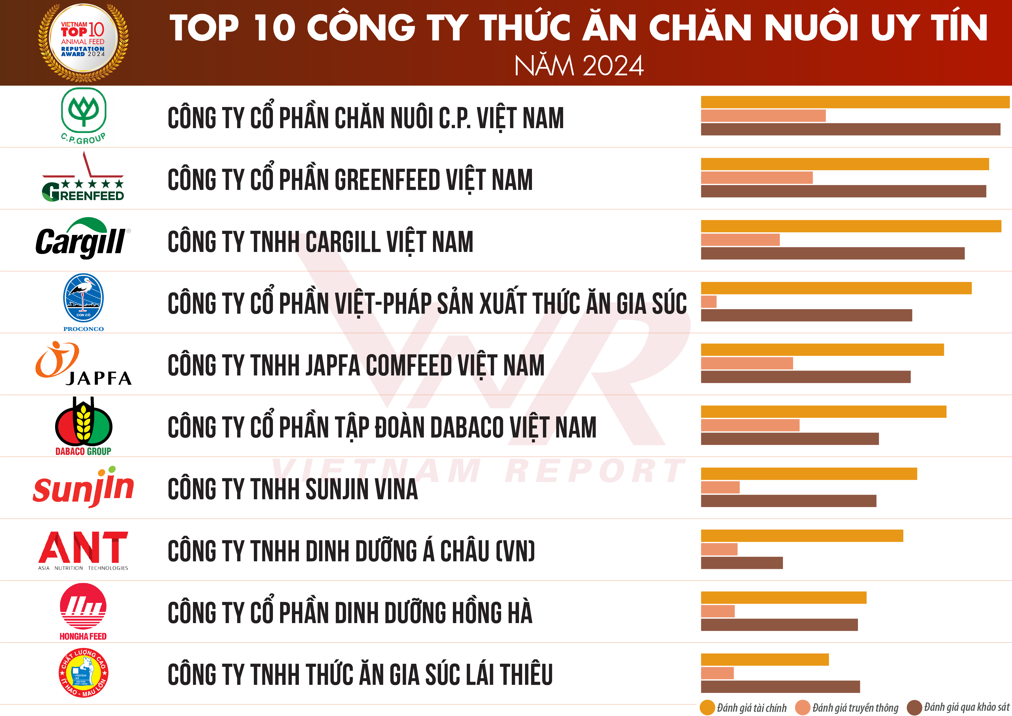 Ngày 12/12/2024, Công ty cổ phần Báo cáo Đánh giá Việt Nam (Vietnam Report) chính thức công bố Bảng xếp hạng Top 10 Công ty Thức ăn chăn nuôi uy tín n...